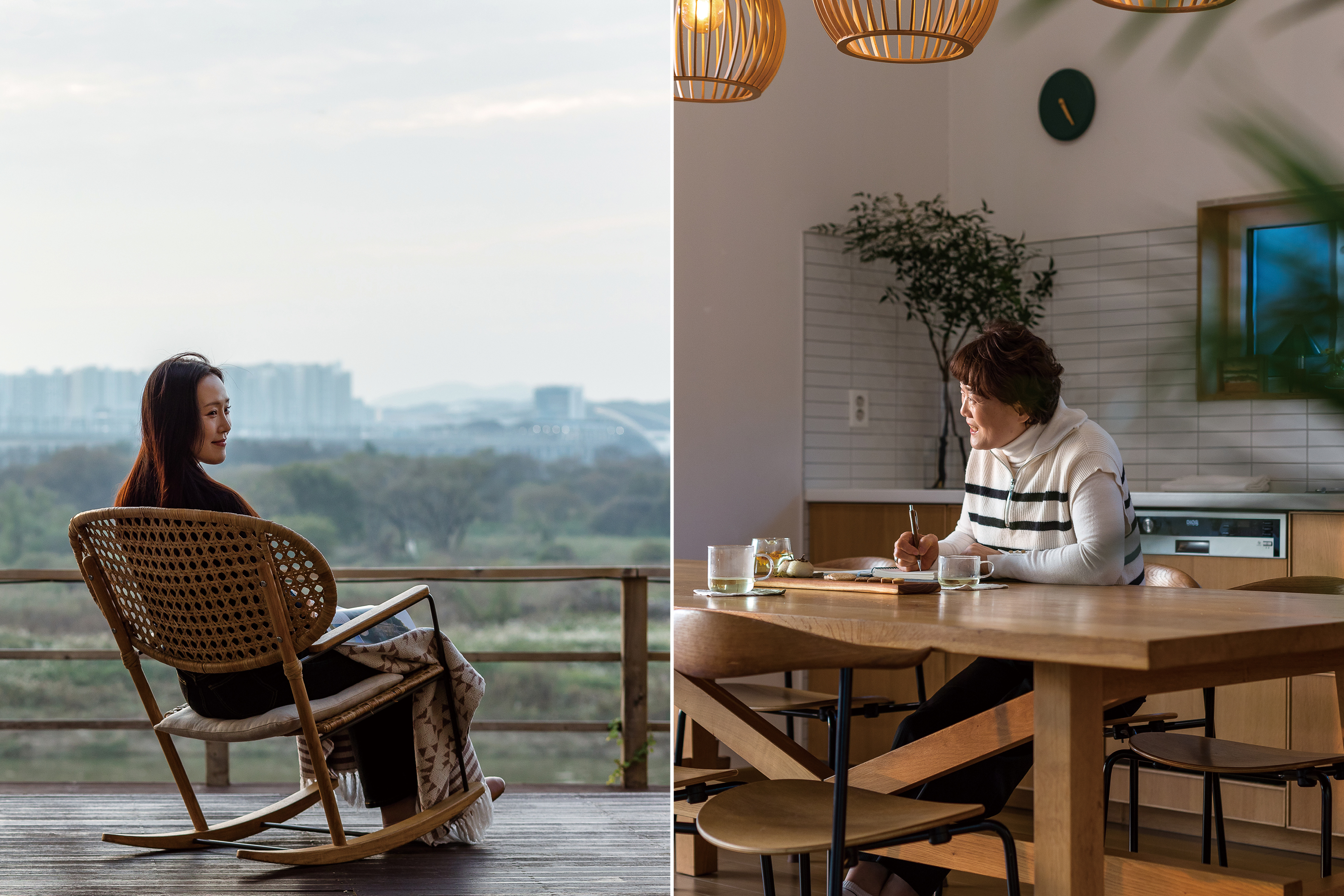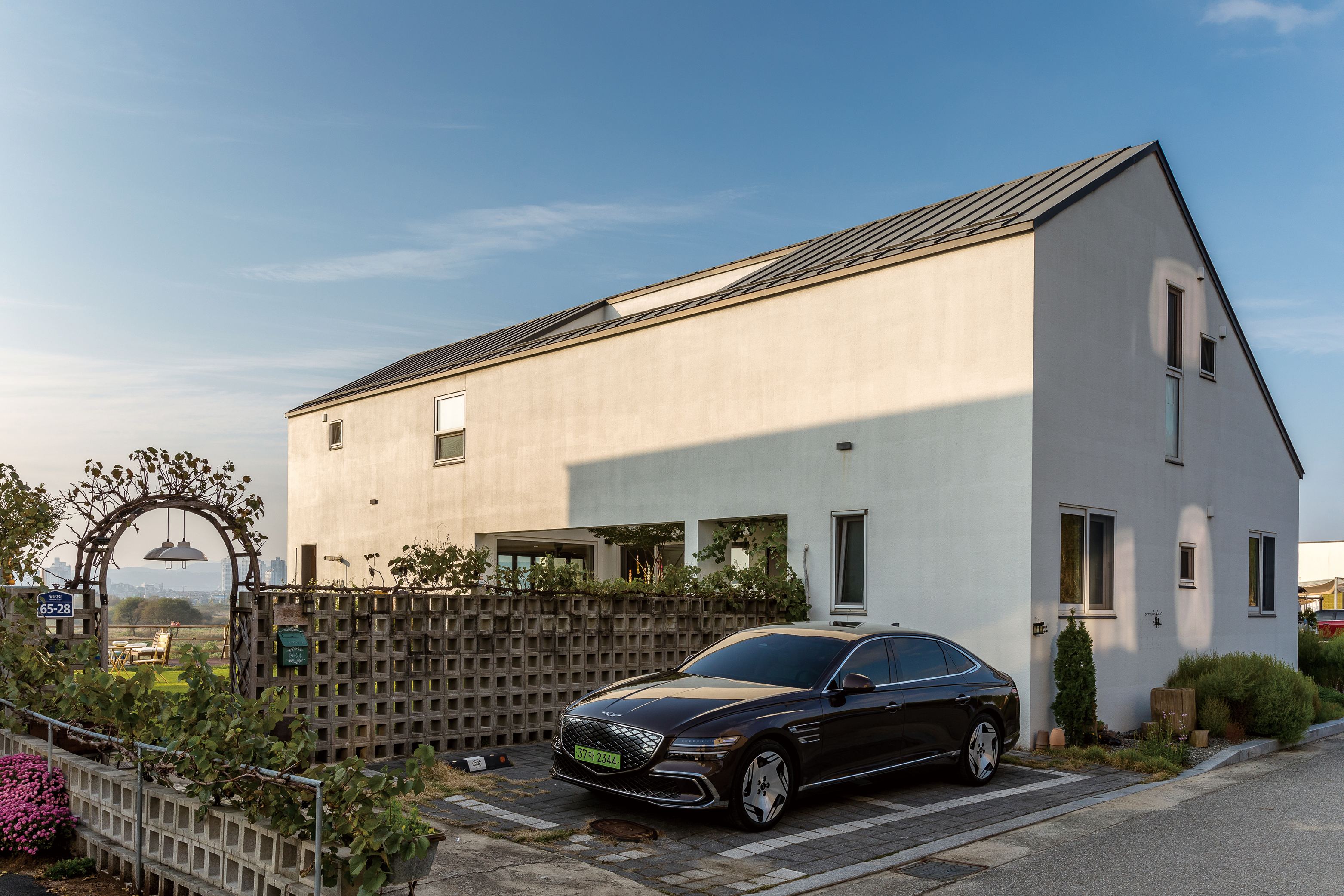 낮은 담장 너머로 정성스레 가꾼 정원이 보이고, 거실의 커다란 통창 너머로는 시간마다 표정을 달리하는 미호천의 풍경이 고스란히 담겨 있다. 그 모습을 내어주는 것만으로도 이 집의 역할은 충분하다고 말할 수 있겠다. 왠지 이 집에 머무르는 동안에는 이곳만의 루틴에 따라 느릿하게 시간을 보낼 수 있을 것만 같다.