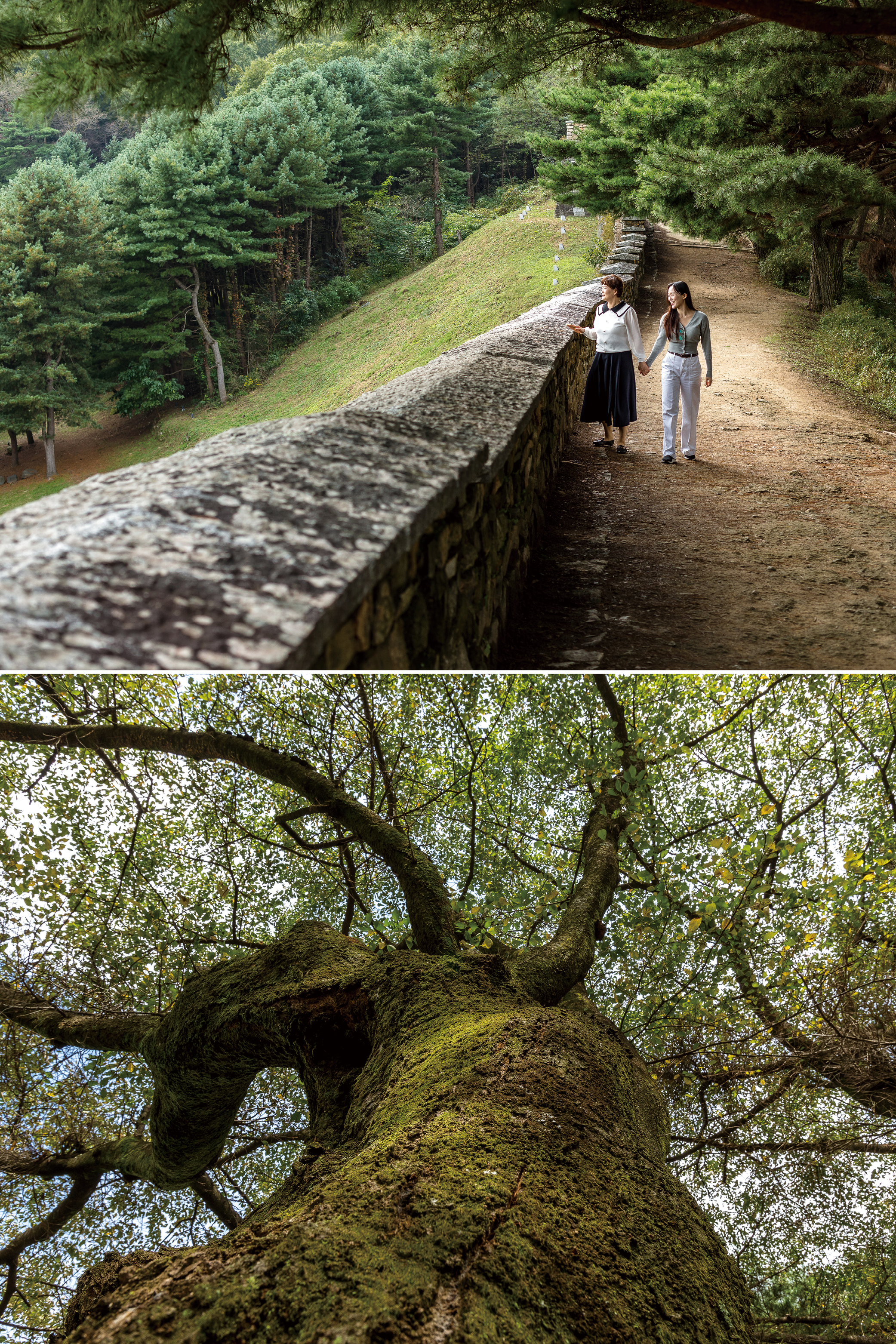 여행의 이튿날, 유난히 맑았던 오후에 모녀는 성곽길로 발걸음을 옮긴다. 성벽 아래 난 작은 흙길을 따라 걸으며 엄마는 오랜 세월을 버텨낸 돌의 결을 손끝으로 더듬고, 딸은 나뭇잎 사이로 반짝이며 흔들리는 빛에 시선을 멈춘다. 걷는 속도가 느려지면 발아래 작은 풀꽃이, 성벽 틈에 자리 잡은 이끼가 선명하게 다가온다.