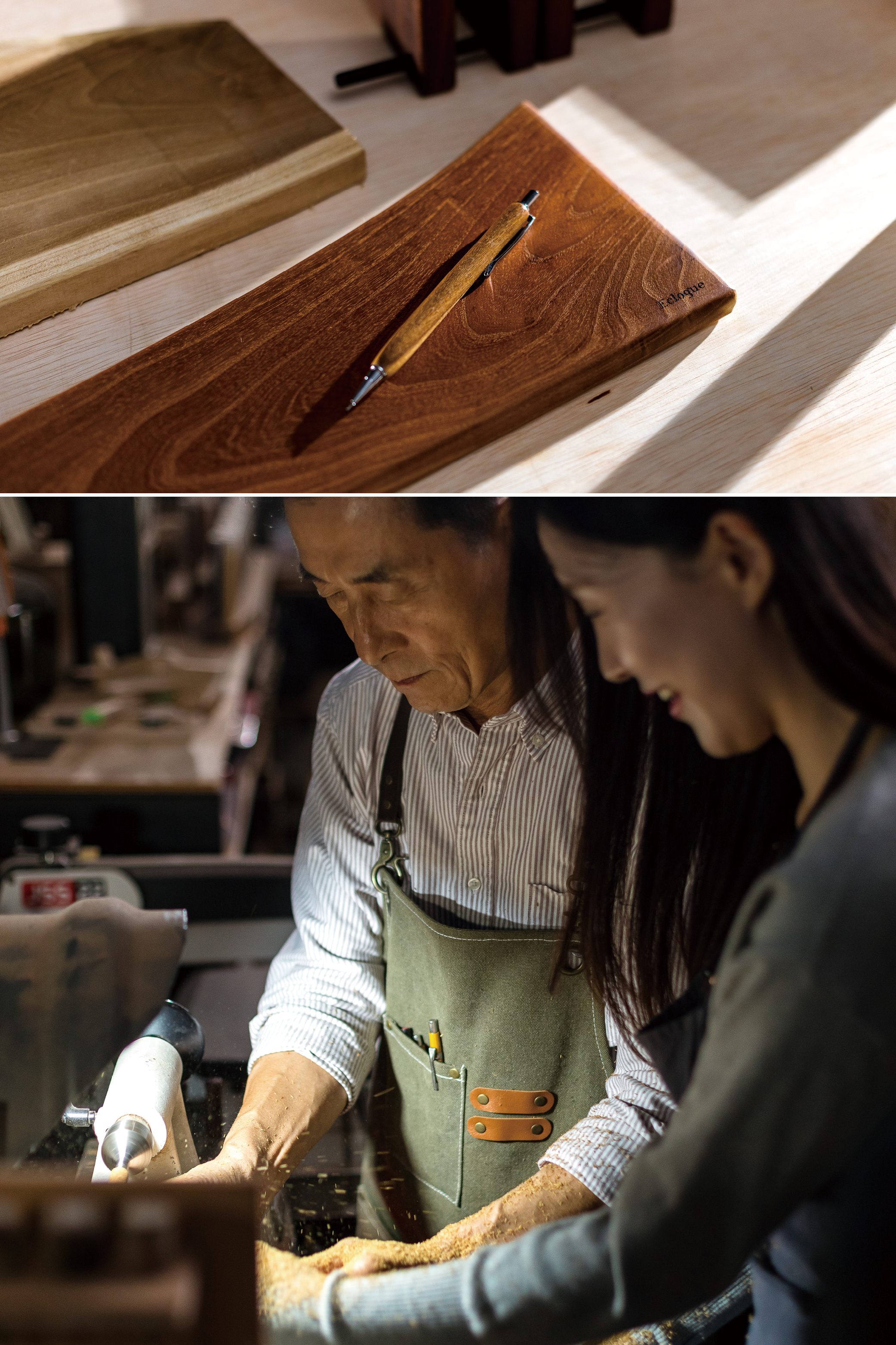 “놀라지 마세요, 소리가 좀 크거든요.” 그의 말이 끝나기 무섭게 나무가 단번에 잘려 나갔고, 곧바로 모녀를 위한 목공 수업이 시작되었다. 예은 씨는 엄마를 위해 평소 주방에 들이고 싶어 하던 나무 도마와 늘 뭔가를 기록해두는 취미에 필요한 샤프 하나를 만들기로 했다. 적당한 목재를 고르고, 알맞은 크기로 자르고, 표면을 다듬고, 형태를 만들어가는 과정이 이어진다. 이 모든 과정은 나무가 지닌 본연의 결을 드러내고, 그 결을 보다 아름답게 구현하는 일 같아 보인다. 오일을 묻힌 헝겊으로 도마의 표면을 살살 닦아내며 기름칠을 하고, 나무 틀에 심을 끼우고 마무리 손질을 하니 작은 필기구도 완성이다. 그것들을 자꾸만 쓰다듬는 엄마의 손길에서 딸의 선물이 마음에 꼭 들었다는 것을 알 수 있다.