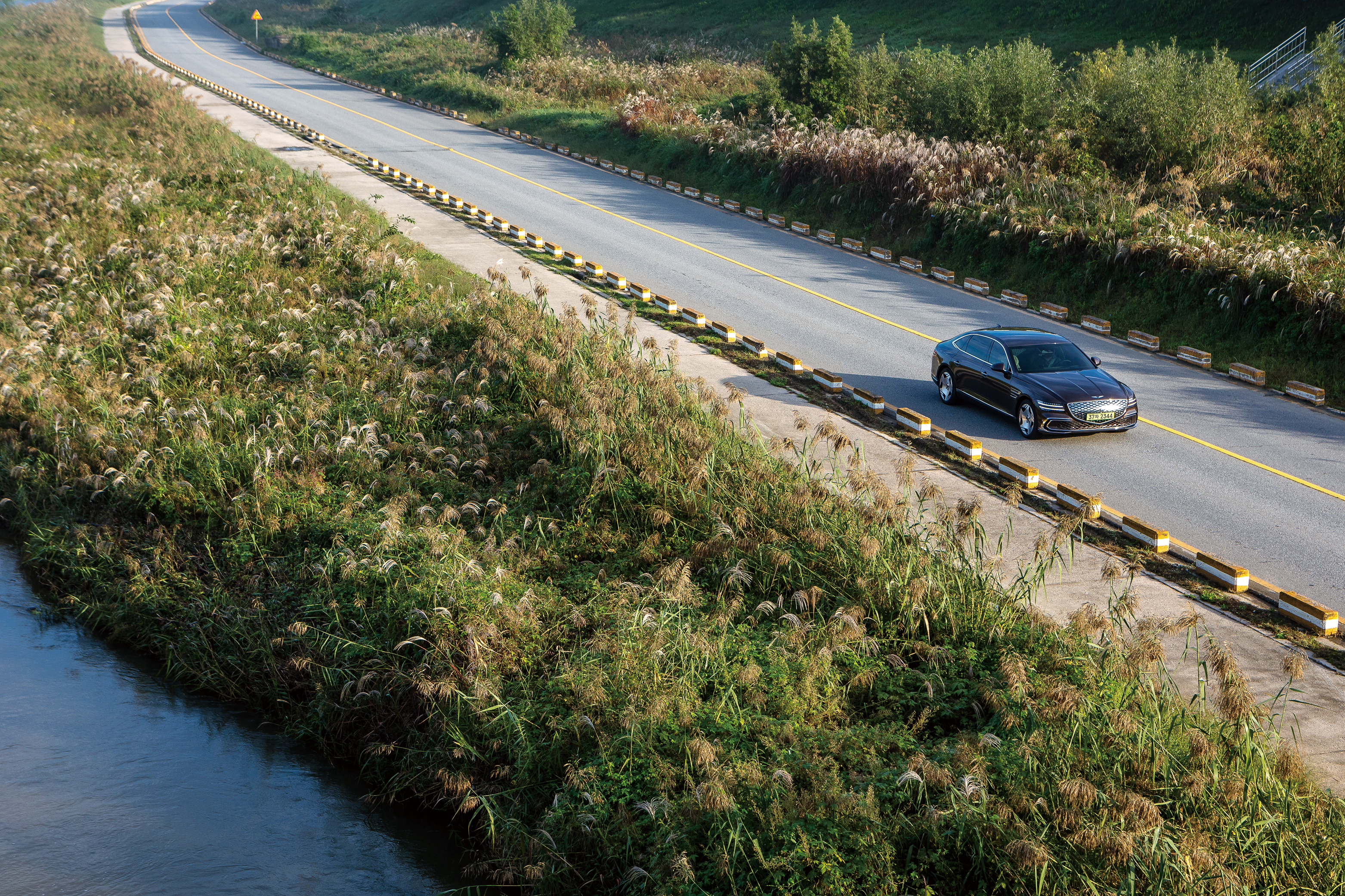 제네시스 청주가 위치한 비하동에서 남쪽으로 약 40여 분가량 달려 대청댐 전망대에 도착한다. 대청호를 한눈에 내려다볼 수 있는 전망대까지의 거리는 27km 정도에 불과하지만, 목적지로 향하는 방예은길은 내내 오르막과 내리막으로 이어져 생각보다 더 많은 시간을 필요로 한다. 덕분에 엄마와 딸은 둘만의 공간에서 앞으로의 여정에 관하여 기나긴 이야기를 나눌 수 있었다.