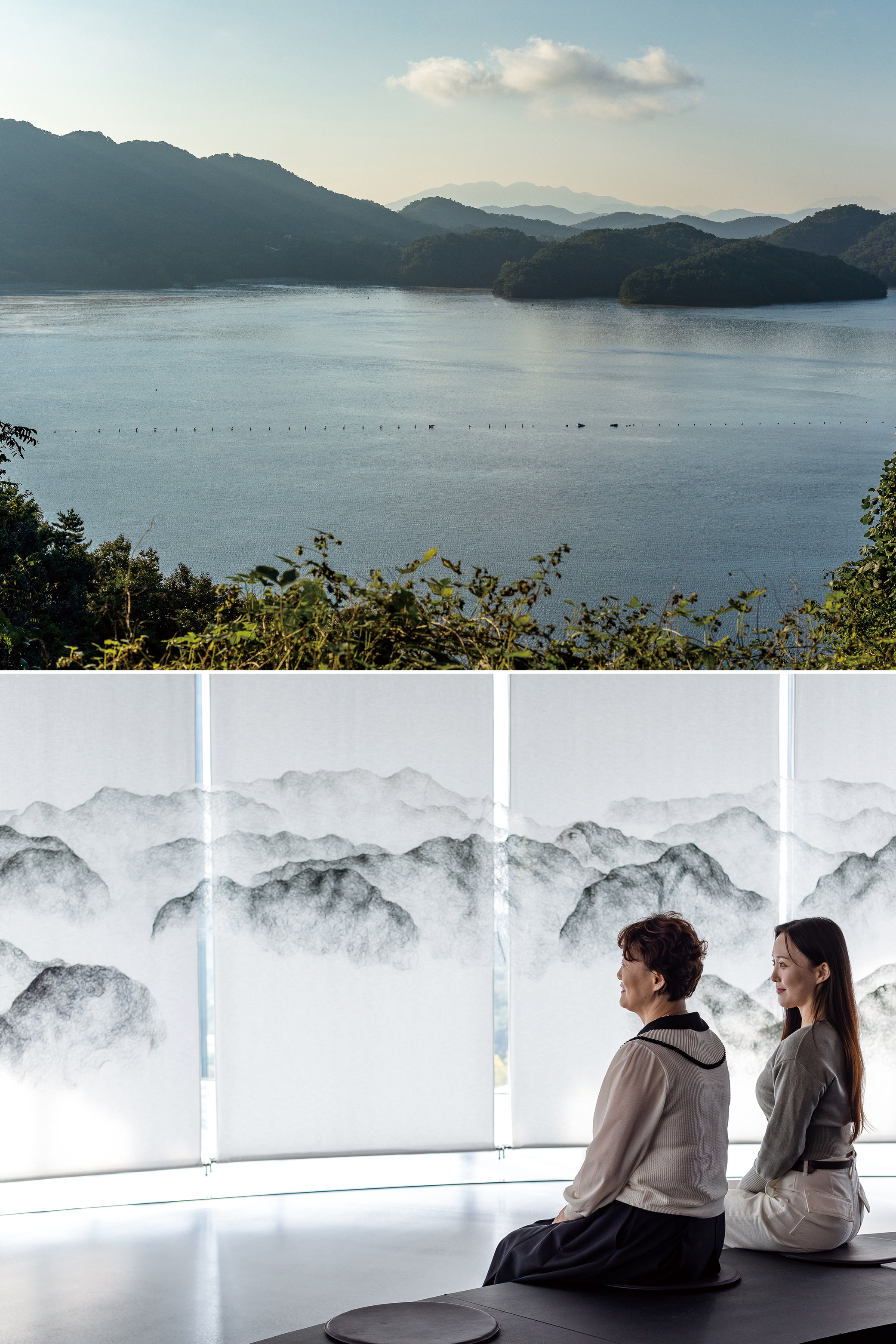 청주 도심에서 청남대로 이어지는 도로는 계절마다 풍경이 확연하게 달라진다. 길 양옆으로 늘어선 은행나무, 소나무, 벚나무는 한여름에 짙은 녹음 터널을 만들다가 가을이면 하루가 다르게 황금빛으로 물들어간다. 굽이치는 길을 따라 드라이브를 하다 보면, 대청호가 시야를 활짝 열어주었다가 이내 숲이 다시 차창을 채우는 장면이 반복된다. 그 길목에서 대청호를 품은 작은 미술관 하나가 아담하게 모습을 드러낸다. 이곳에서는 늘 특별한 전시가 열려 눈길을 끄는데, 개관을 기념해 선보였던 <김환기와 편지>전부터 공예의 다양한 변주를 탐닉할 수 있었던 <2025 초대전, 잇다: 공예·전통·내일>까지 구성이 다양하다. 모녀는 잠시 숨을 고를 겸, 호수영미술관 부근을 천천히 산책해보기로 했다. 산책로를 따라 걷다 보니 어느새 호숫가에 다다랐고, 두 사람은 조금 전 차창 밖으로 스쳐 지나가던 들꽃이며 나무의 형태를 떠올리며 대화를 이어간다. 이렇듯 여행을 더욱 특별하게 만드는 건, 어쩌면 같은 풍경을 함께 바라볼 수 있는 누군가의 존재일지도 모른다.