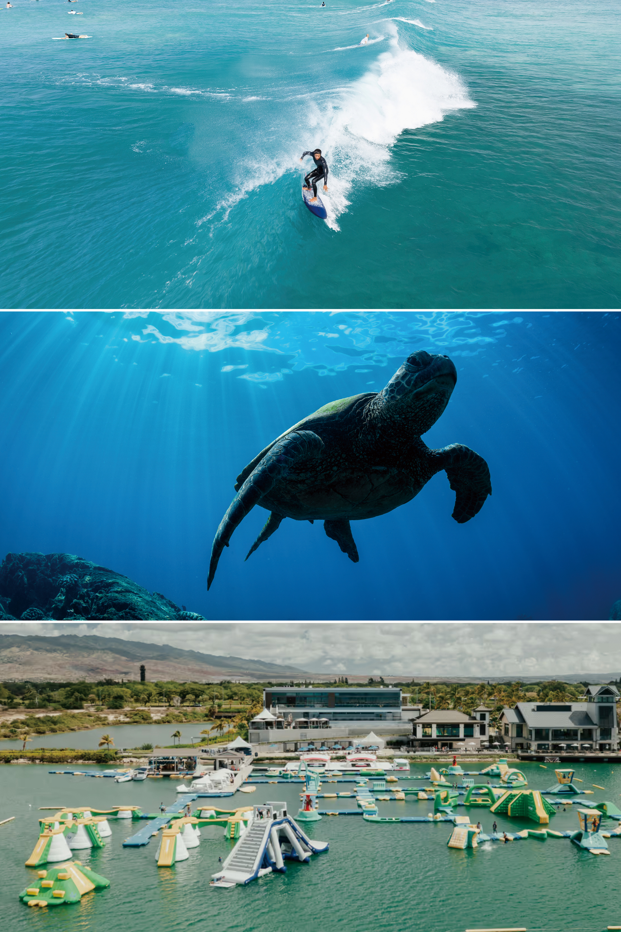 - Full Day 플랜: Half Day 플랜 모든 액티비티 + 인공 서핑장 이용 + 프리미엄 런치 메뉴 제공 + $10 크레딧(스토어에서 $20 이상 구매 시, 할인 품목 대상 제외)