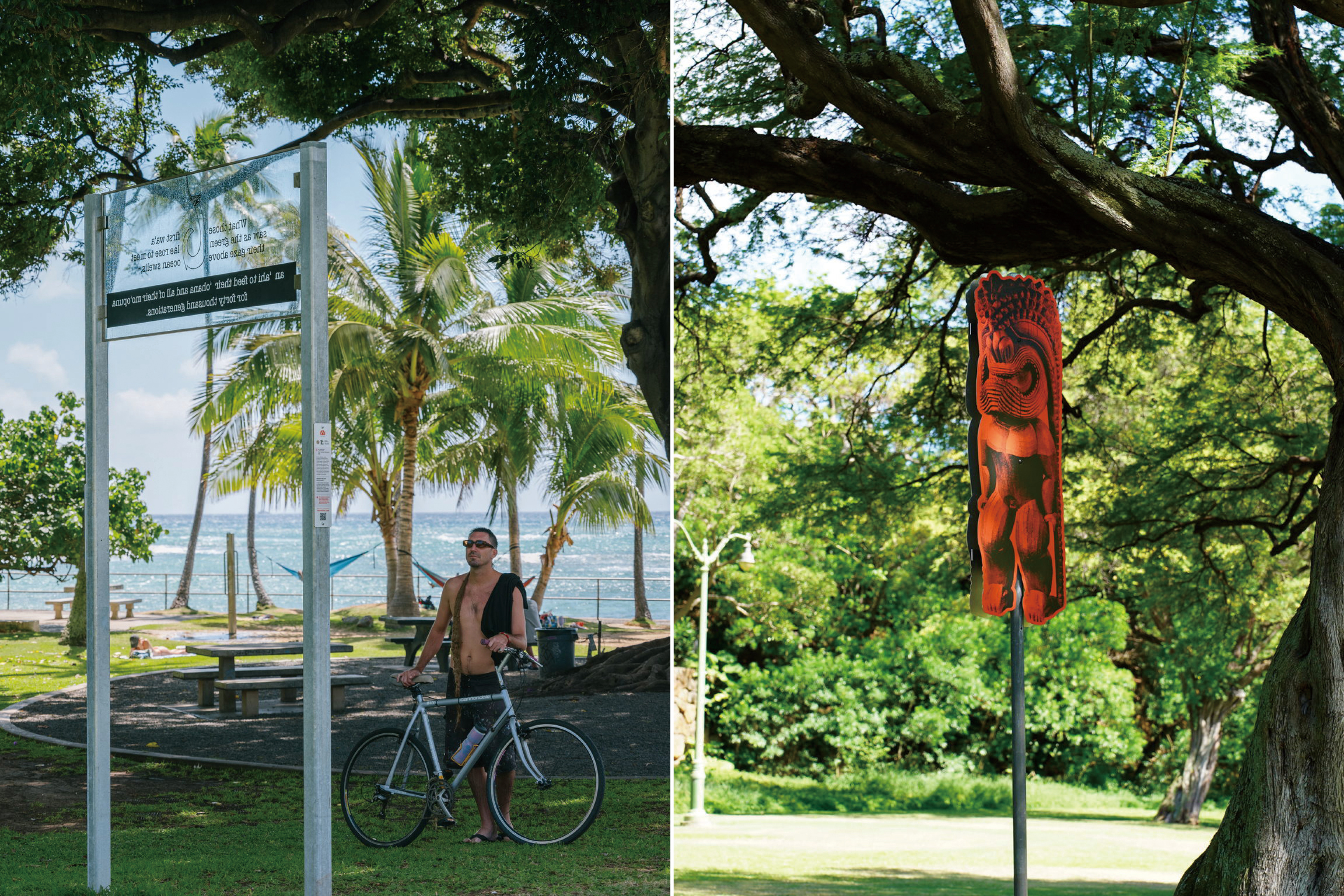 ‘와히 파나: 이야기가 깃든 장소Wahi Pana: Storied Places’는 2025년 공개된 공공예술 프로젝트로, 하와이 원주민과 하와이 기반 예술가의 작품을 선보인다. 이 프로젝트는 하와이 원주민의 서사를 알리고, 현지 예술가의 활동을 지원하며, 주민과 여행자가 함께 하와이의 자연과 문화를 존중할 수 있도록 인식을 제고하는 역할을 한다. 주요 작품으로는 오아후의 공공 버스인 더버스 랩핑 아트, 레아히의 중요성을 강조하는 시를 수놓은 표지판이 있다. 이 외에도 포트 스트리트 몰Fort Street Mall, 포트 드러시Fort DeRussy, 카피올라니 공원Kapi‘olani Park 등 오아후 전역의 공공장소에서 2028년 2월까지 작품을 감상할 수 있다. 블룸버그 재단의 ‘Bloomberg Connects: Arts+Culture’ 앱을 통해 작품별 상세 설명과 참여 예술가 소개를 확인할 수 있으며, 한국어 서비스도 지원된다.