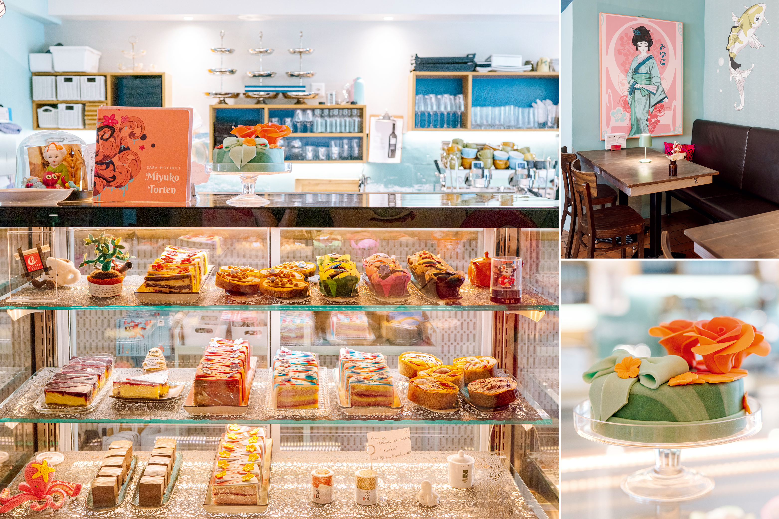 사라의 파트너이자 미유코의 헤드 바리스타인 도미니크 그렌츨러Dominik Grenzler가 덧붙인다. 그는 사라의 부드러운 무스 디저트와 어우러지도록 정교하게 내린 커피와 섬세한 일본 차를 선보인다. 그러나 진짜 주인공은 사라의 다채로운 레이어 케이크(오른쪽 아래)다. 그래픽 디자이너이자 슈거 아티스트로 훈련받은 그녀는 만화적 감각이 돋보이는 스타일화된 아트워크에서 영감을 얻는다. 맛의 세계에는 말차, 흑임자, 유자 등 일본적인 터치가 더해져 독창적인 개성을 완성한다. 이 케이크는 맞춤 제작이 가능하며 동물, 만화풍 캐릭터, 심지어 풍경 전체까지 그녀의 상상력이 닿는 한 모든 것이 케이크 위에서 생명을 얻는다.