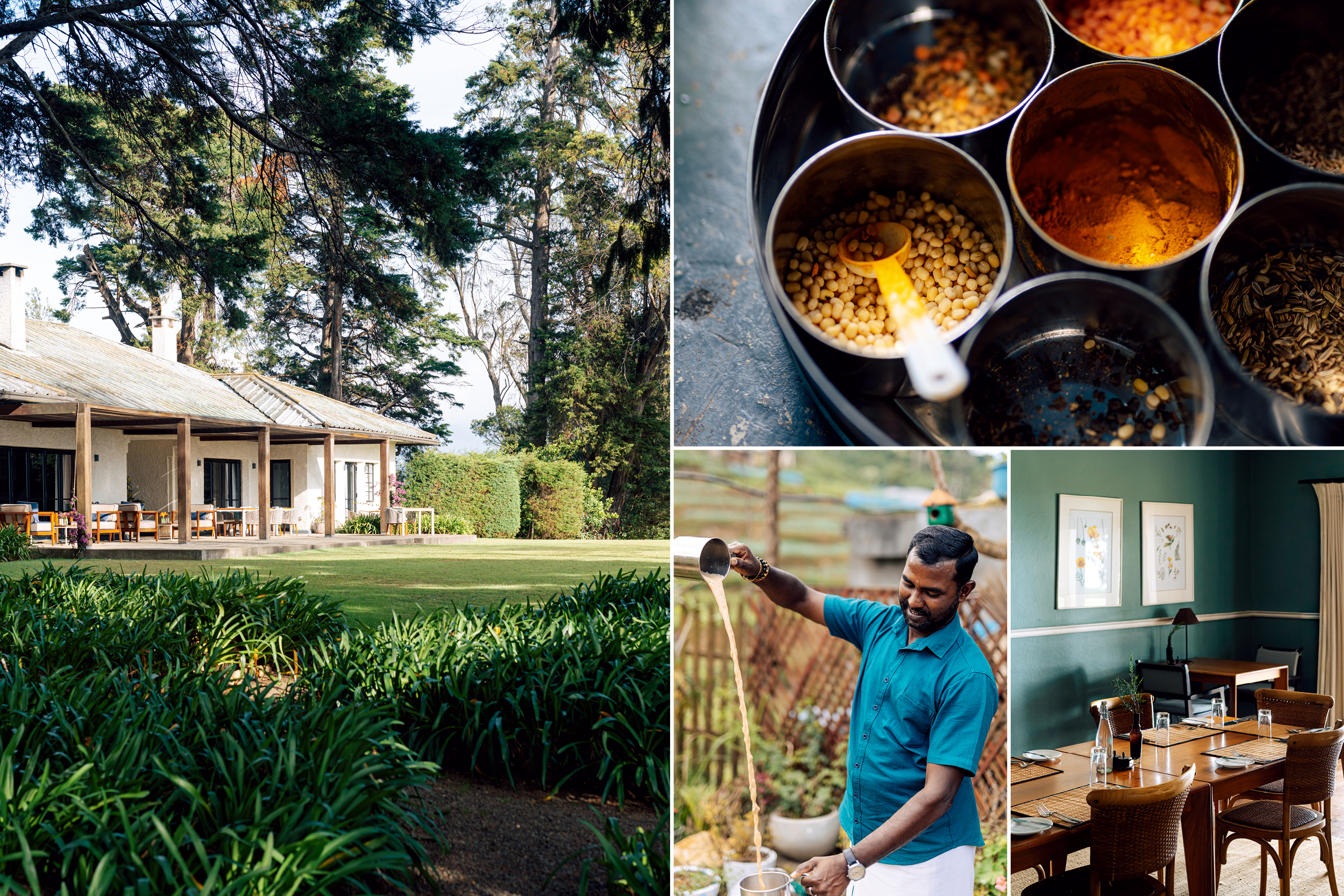 수레쉬 사티아나탄Suresh Sathyanathan과 그의 아내 아누주Anuju는 라갈라 사원 공동체의 일원이다. 두 사람은 헤더셋 에스테이트Hethersett Estate에 있는 전통 노동자 주택에서 살며 요리 수업을 진행한다. 수업은 자연스럽게 함께하는 점심 식사로 이어진다. 채소밭이 내려다보이는 소박한 주방에서 준비한 음식은 ‘야드 티yard tea’ 한 잔과 함께 식탁에 오른다. 수레쉬의 설명에 따르면 이 차의 풍미는 약 1m 높이에서 따라 공기를 섞는 방식을 통해 완성된다.